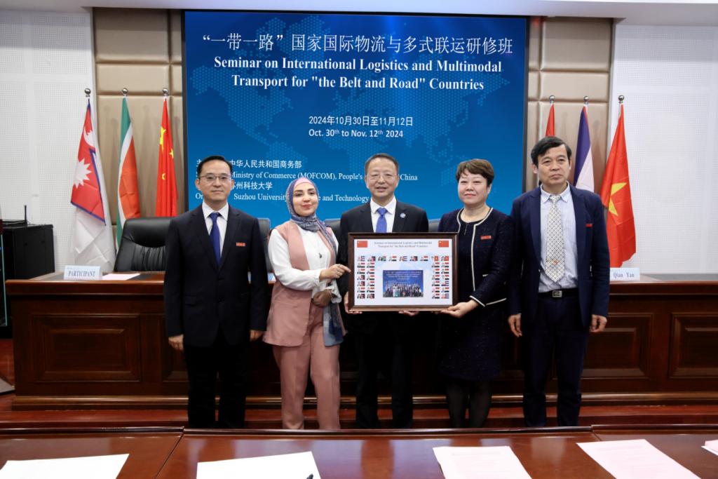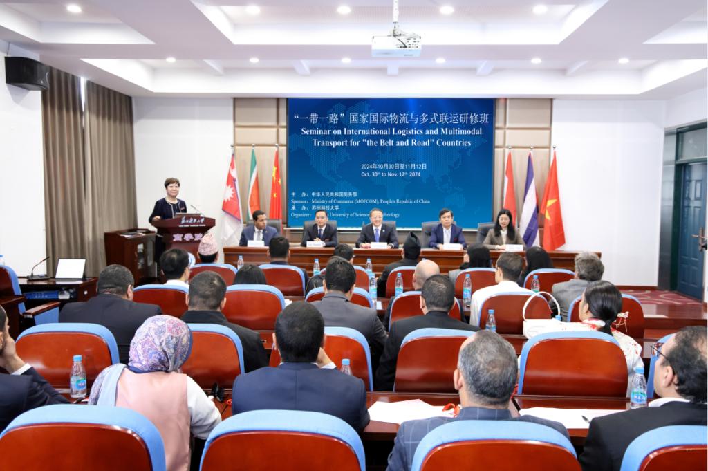 11月12日,商务部援外培训项目“‘一带一路’国家国际物流与多式联运研修班”在公司圆满结束。公司党委书记姜朋明出席结业典礼并讲话。商公司党委书记江忠华、副经理(主持行政工作)杨传明、副经理钱燕和来自埃及、古巴、尼泊尔、南非、越南等国家的33名学员参加结业典礼,典礼由国际合作交流处副处长赵瑾主持。本次研修班由beat365亚洲体育官方网站承办。