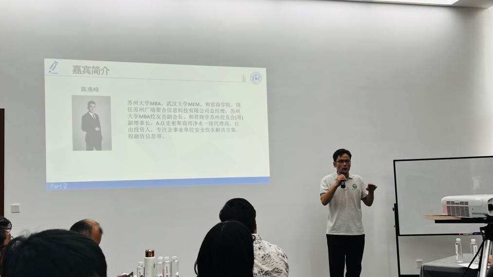 史密斯苏州总经理陈燕峰则分享了个人的MBA读研经历与感悟,建议同学们大胆尝试各领域活动,突破自我。同时介绍了品牌经销商的渠道优势及热水器、净水器、咖啡机等产品的特点与营销方式。